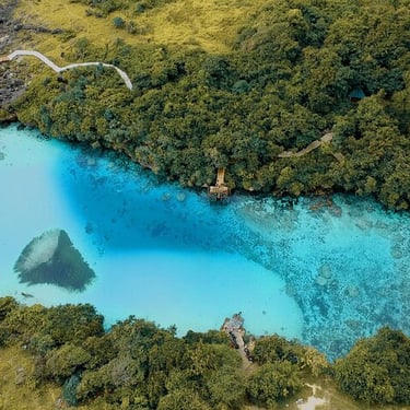 There are more than half a dozen small, dirt roads leading off Jl Waitabula-Bondokodi that eventually get you to the aquamarine waters of this jaw-droppingly beautiful wonder. There are vendors selling cup noodles, coconuts and other snacks, but avoid purchasing bracelets