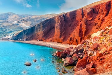 Red Beach, also called Kokkini Paralia (literally: red beach), is located in the southwestern part of the island of Santorini, near the village of Akrotiri.